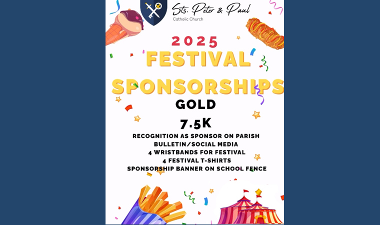 Make checks payable to: Sts. Peter and Paul Catholic Church. For inquiries, please email: ltommasi@stspeter-paul.org. Together, we can make this year’s festival the best one yet!